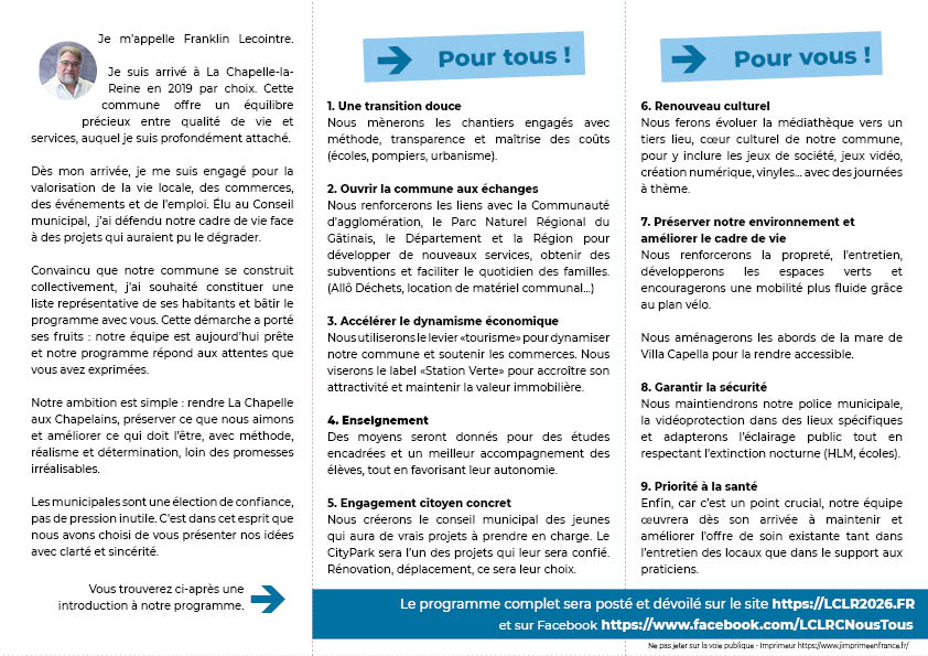 Ce lundi 9 février, la liste a été déposée à la sous-préfecture. La validation est faite, donc nous pouvons désormais aller plus loin dans notre communication.