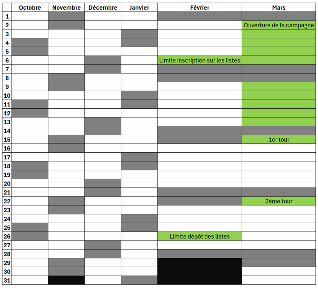 - Le premier tour aura lieu le dimanche 15 mars 2026.